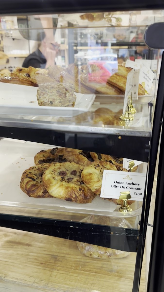 Loved this little place. The bread is delicious. We ordered the hot dog croissant, mushroom mascarpone, onion anchovy and pistachio croissant. It’s a great place to hangout on Sunday morning.